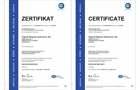 Die Vogel & Plötscher GmbH & Co. KG ist von der TÜV SÜD Management Service GmbH offiziell zertifiziert worden.